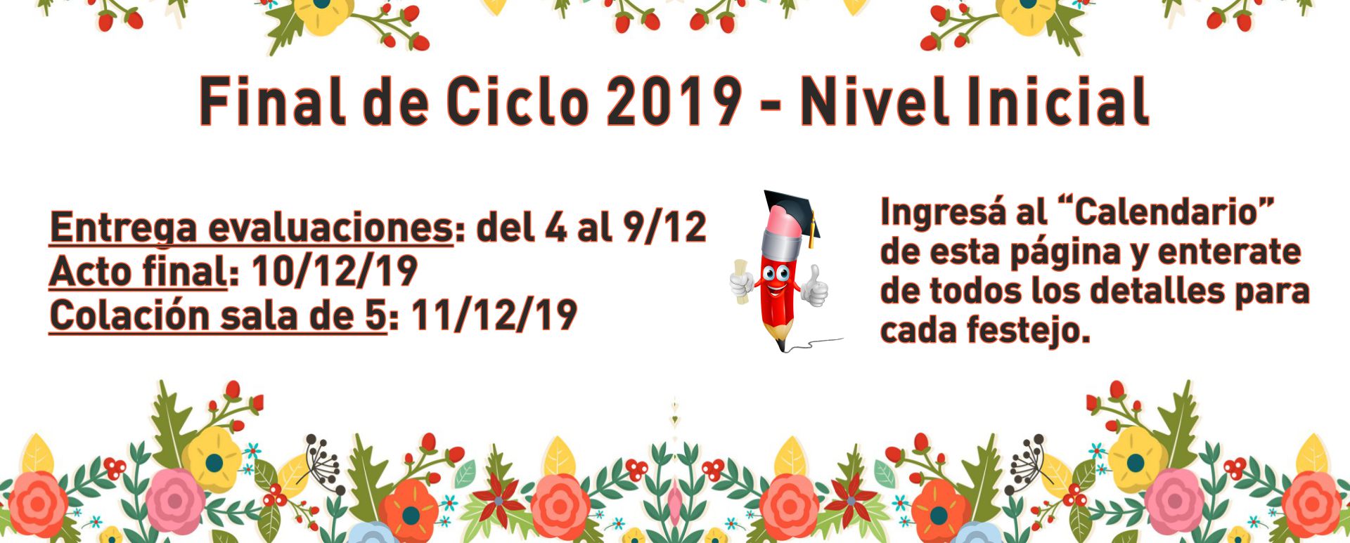 Se acerca el Fin de Ciclo lectivo y queremos compartir con ustedes algunas fechas y horarios importantes a tener en cuenta:
